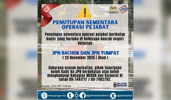 Banjir: Operasi JPN Bachok dan Tumpat ditutup sementara