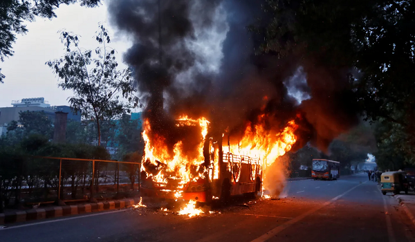 “Pemandu memberhentikan bas di tepi jalan, tetapi dalam beberapa saat sahaja, api marak dan membakar keseluruhan kenderaan,” menurut laporan PTI.