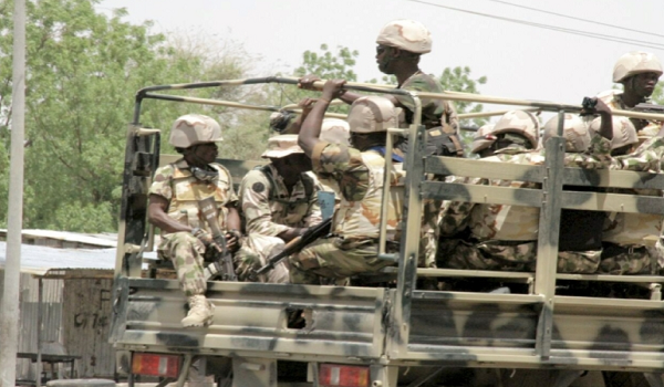 (Foto Fail: Kelihatan askar menaiki trak di Nigeria/ REUTERS)