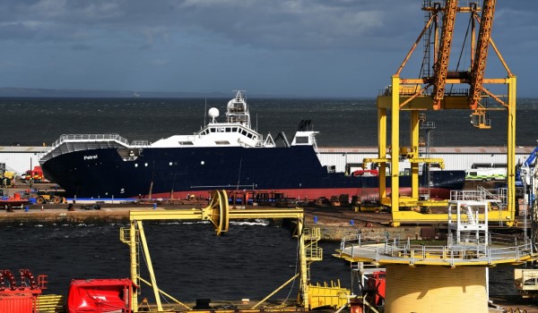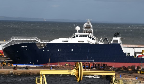 Kapal penyelidikan Petrel berada pada kedudukan 45 darjah di Dermaga Imperial di daerah Leith di utara ibu negara Scotland.