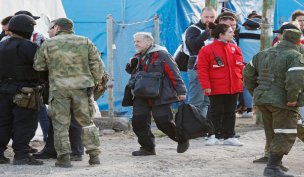 (Seorang lelaki yang dipindahkan dari kilang keluli Azovstal, Mariupol berjalan di pusat penginapan sementara