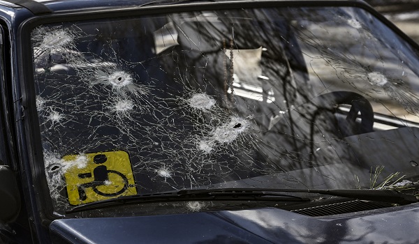 (Beberapa tembakan mengenai cermin sebuah kereta di Irpin, utara Kiev berlaku pada 10 Mac 2022/AFP)