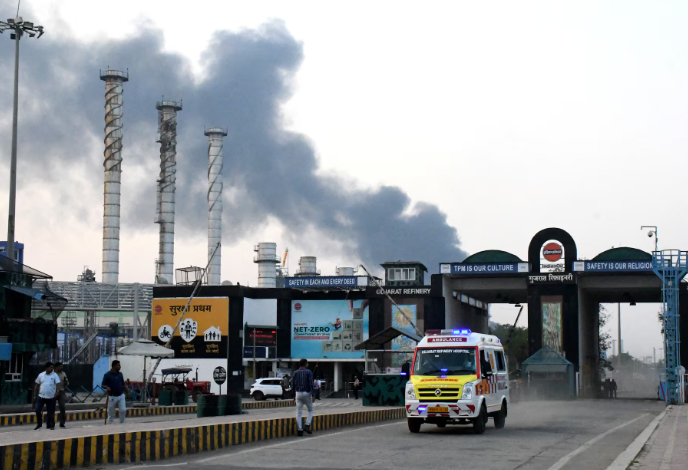 Isnin lepas dua orang maut selepas kebakaran dalam tangki simpanan benzena di kilang penapis 13.7 MTPA milik syarikat itu di Vadodara, Gujarat di barat India.- BERNAMA