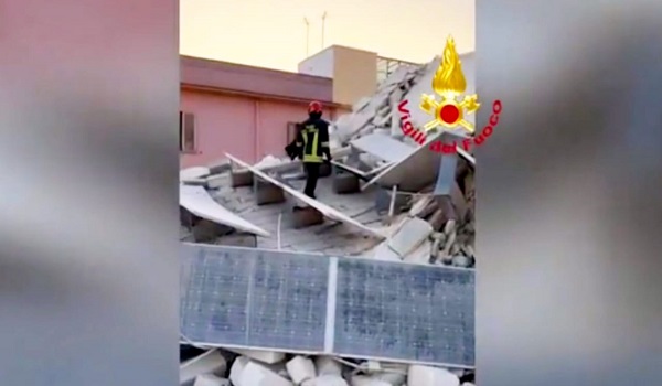 BRINDISI, 30 Ogos- Sebuah bangunan dua tingkat yang turut menempatkan sebuah pasar raya di bandar Brindisi, selatan Itali, runtuh, hari ini.