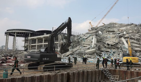 Insiden tragis itu menyebabkan bangunan setinggi 30 tingkat yang sedang dibina untuk menempatkan Pejabat Audit Negara itu runtuh ketika gegaran akibat gempa bumi kuat bermagnitud 7.7 yang melanda negara jiran, Myanmar.-REUTERS