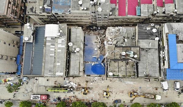 (Gambar udara yang diambil pada 29 April 2022 menunjukkan penyelamat bekerja selepas bangunan enam tingkat runtuh di Changsha, di wilayah Hunan tengah China/CNS/AFP)