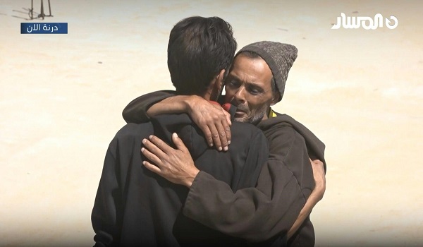(Dua mangsa yang terselamat cuba menenangkan antara satu sama lain apabila