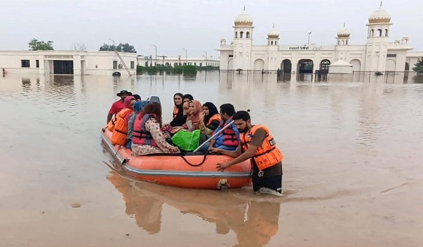 Air banjir dilaporkan telah melimpah ke jalan utama menuju ke Gurdwara Sri Darbar Sahib Kartarpur, menyebabkan pasukan penyelamat menggunakan bot untuk memindahkan penduduk ke kawasan lebih selamat.