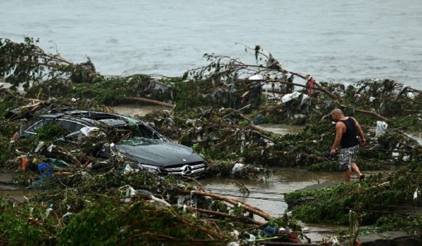 (Keadaan Sungai Yongding melimpah selepas hujan lebat di Beijing/AFP)