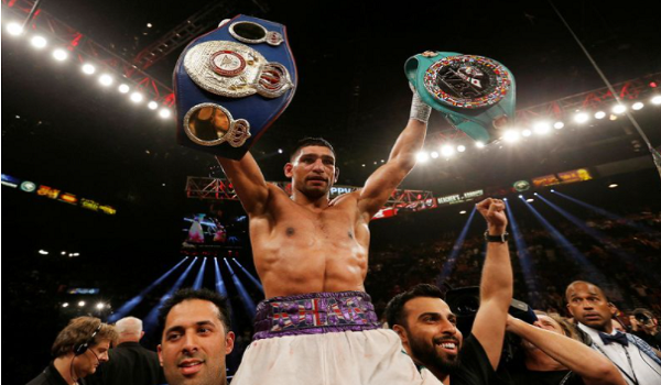 Khan menjadi juara dunia pada 2009, menewaskan Andriy Kotelnik dari Ukraine dalam pertarungan super welerweight WBA dan mengalahkan petinju Amerika Syarikat, Zab Judah untuk menambah tali pinggang IBF dua tahun kemudian. -AFP