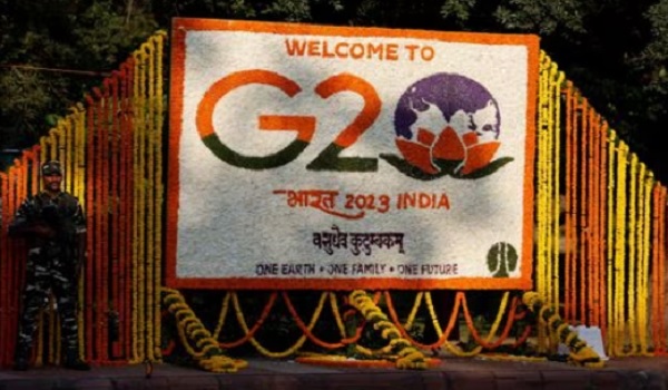 (Seorang lelaki berjalan berhampiran bendera menjelang Sidang Kemuncak G20 di New Delhi/REUTERS)