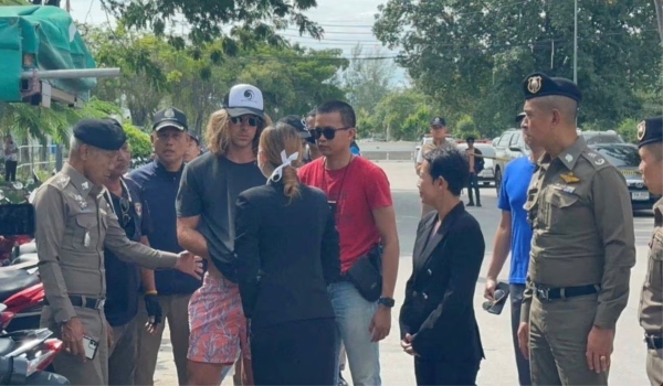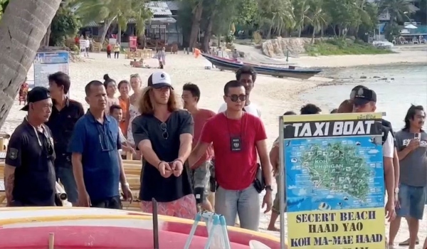 Polis Thailand membawa suspek yang telah membunuh pakar bedah warga Colombia berusia 44 tahun ke lokasi kejadian di pulau Koh Phangan.