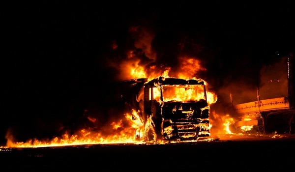Pihak berkuasa memaklumkan serangan mengakibatkan kebakaran melibatkan tiga bangunan kediaman dan stesen perkhidmatan serta kenderaan.