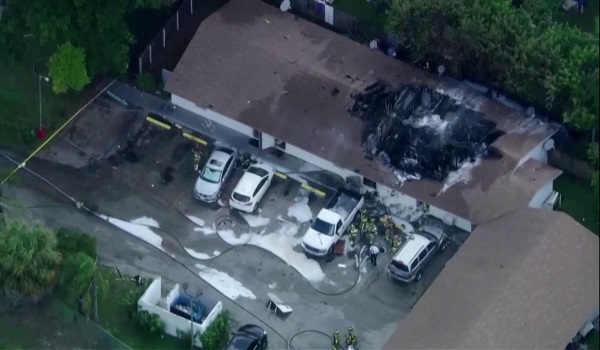 POMPANO BEACH, 29 Ogos- Sebuah helikopter penyelamat terbakar dan terhempas di atas sebuah bangunan kediaman di Florida, Amerika Syarikat, semalam.