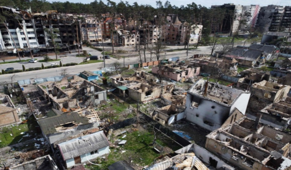(Kawasan perumahan yang musnah di daerah Irpin, barat laut Kiev