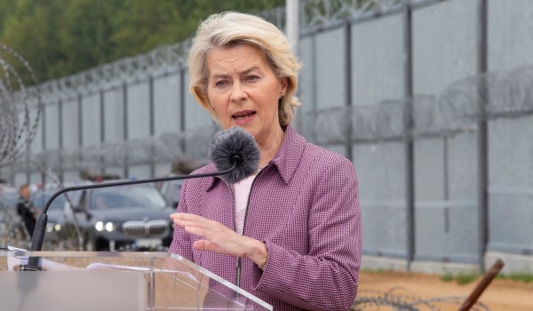 Terdahulu, Presiden Suruhanjaya Eropah, Ursula von der Leyen dan Presiden Lithuania, Gitanas Nauseda mengadakan sidang media bersama selepas mengadakan pertemuan di sempadan Lithuania-Belarus. -REUTERS