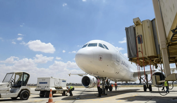 (Pesawat Cham Wings Airbus A320-211 di lapangan terbang Aleppo Syria/AFP)