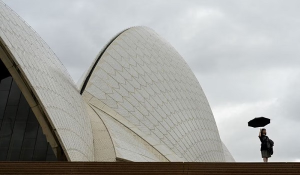 (Sydney Opera House semasa keadaan cuaca mendung dan hujan di Sydney/REUTERS)