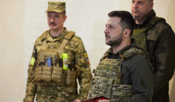 Dalam video itu, askar Ukraine menunjukkan Zelensky memusnahkan trak di tepi jalan.
