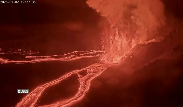 HAWAII, 3 September – Gunung berapi Kilauea di Hawaii terus meletus pada Rabu, memperlihatkan langit malam diterangi aliran lava berwarna jingga yang mengalir dari gunung berapi aktif tersebut.