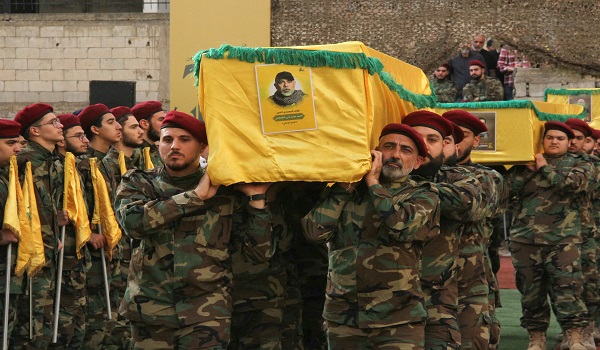 Ratusan penyokong menghadiri upacara di kawasan padat selatan Beirut, mengusung keranda berlapik bendera kuning Hezbollah sambil melaungkan slogan anti Israel dan anti Amerika.