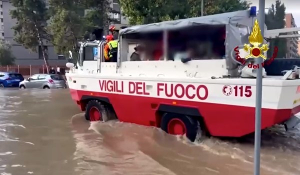 Di Meda, pasukan penyelamat udara menyelamatkan seorang ibu dan anak perempuannya dari kediaman yang dinaiki air, sementara di Milan aset kereta amfibia digunakan untuk memindahkan kira-kira 300 murid yang terkandas di sekolah di daerah Niguarda. -REUTERS