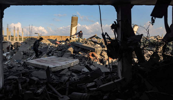 (Runtuhan bangunan yang musnah berikutan pengeboman Israel di Rafah di selatan Semenanjung