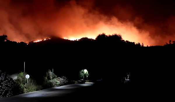 Gabenor tempatan, Konstantinos Moutzouris berkata kebakaran kini menghampiri bandar pantai Vrontados.