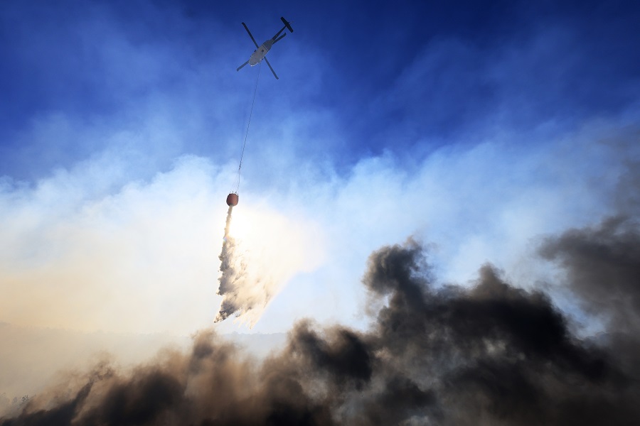 Lebih 300 anggota bomba sedang memadamkan kebakaran yang turut dibantu oleh pesawat.