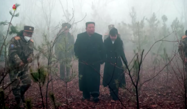 (Kim Jong Un bersama anak perempuannya ketika meninjau ujian