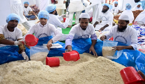 (Sukarelawan bergotong royong menyediakan bantuan kepada mangsa banjir di Dhaka/AFP)