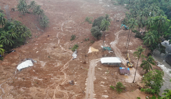 (Rakaman dari udara menunjukkan kawasan kampung Bunga di wilayah Leyte ditenggelami lumpur dan pasir yang disebabkan Taufan Megi/AFP)