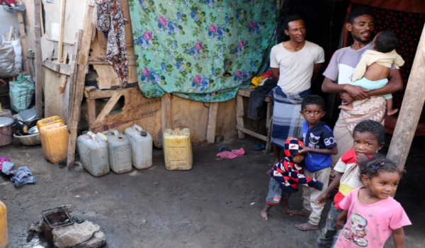 (Rakyat Yaman berada di luar khemah di kem pelarian – REUTERS)