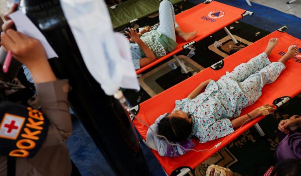 Dewan sukan di Bandung Barat dijadikan pusat rawatan sementara, dengan murid terbaring di katil lipat, malah sebahagian dirawat di luar hospital.
