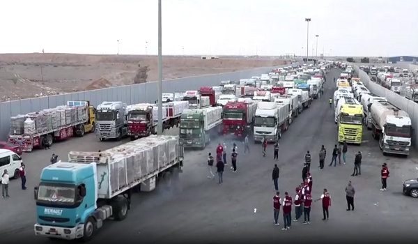 Rakaman langsung oleh stesen televisyen Mesir, Al Qahera, menunjukkan barisan panjang lori sedang menunggu, dengan sebahagiannya mula bergerak ke hadapan.