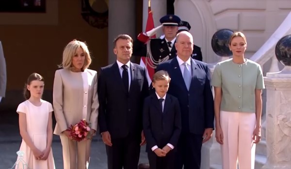 Turut menyambut pasangan Presiden Perancis itu ialah anak kembar pasangan diraja Monaco yang berusia 10 tahun, Putera Waris Jacques dan Puteri Gabriella.