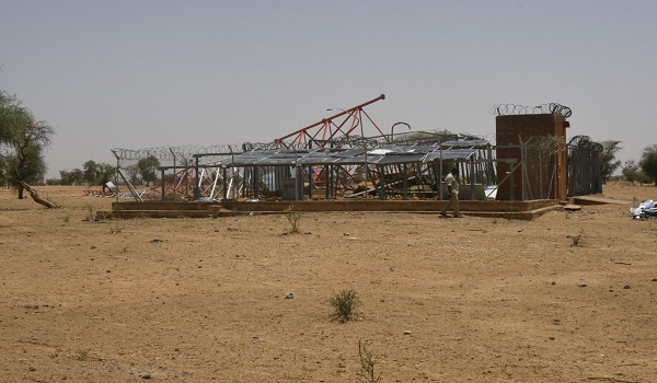 (Gambar fail bertarikh 9 Jun 2022 yang menunjukkan antena sebuah syarikat telefon tempatan yang musnah semasa serangan yang disyaki pejuang jihad di Gorouol, barat daya Niger)