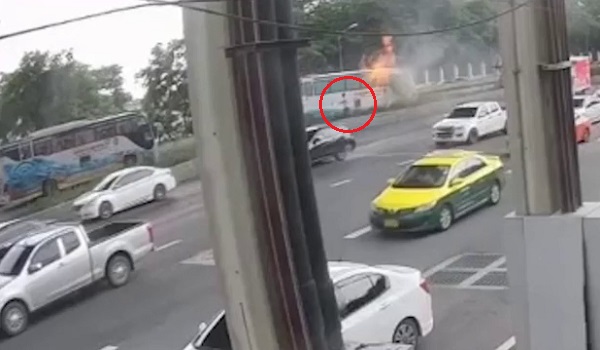 Saman Chankut, 48, yang dirakam kamera litar tertutup (CCTV) melanggar penghadang konkrit di Jalan Vibhavadi Rangsit dekat sini di pinggir Bangkok pada 12.30 tengah hari semalam, ditahan di rumah isterinya di Ang Thong untuk siasatan lanjut.