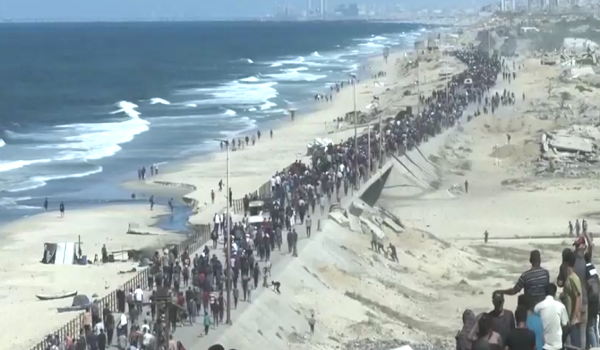 Satu barisan panjang penduduk Gaza dilihat berpindah dan bergerak ke utara di jalan pesisir menuju ke Gaza City, kawasan bandar terbesar di enklaf tersebut yang telah diserang beberapa hari lalu dalam salah satu serangan terbesar Israel.
