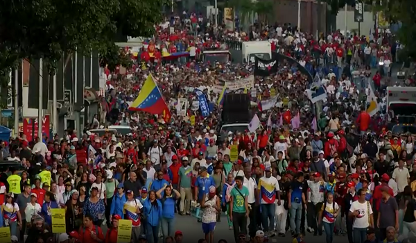 Perarakan itu dianjurkan oleh kumpulan politik dan sosial, dengan membawa sepanduk menolak campur tangan asing serta menyatakan sokongan terhadap Presiden Venezuela, Nicolas Maduro.
