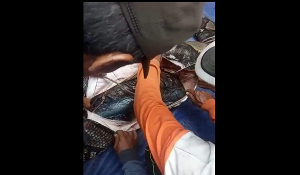 perut ular sawa sepanjang tujuh meter, Isnin lalu Tangkap layar video tular di YOUTUIBE)