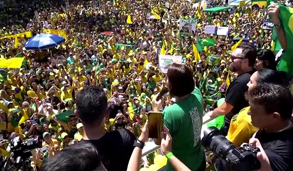 Walaupun Bolsonaro tidak hadir secara fizikal dalam perhimpunan itu, beliau sempat berucap kepada penyokong menerusi panggilan telefon yang dibuat oleh anaknya, Senator Flavio Bolsonaro, ketika protes berlangsung di sini.