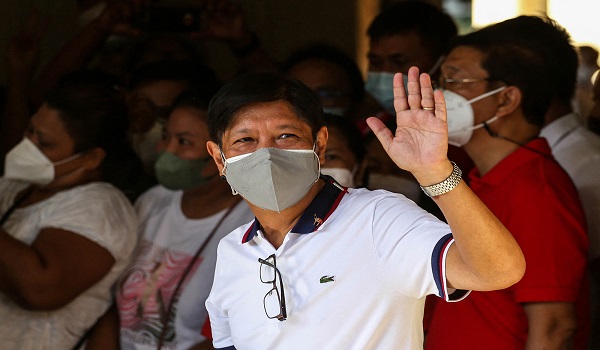 (Calon Presiden, Ferdinand Marcos Jr melambai tangan kepada penyokongnya selepas mengundi