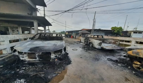 Turut musnah beberapa kenderaan yang berada berhampiran.