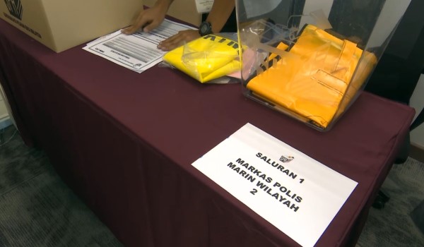 Persiapan itu melibatkan kerja penyediaan peralatan proses mengundi yang bakal berlangsung di Markas Pasukan Polis Marin Wilayah 2 dan Balai Polis Kempas, Johor Bahru.