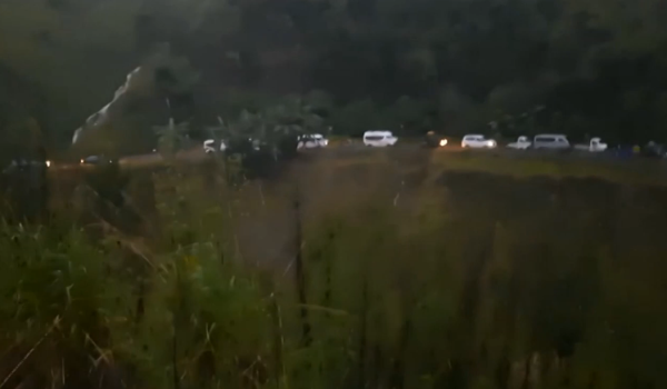 (Kejadian tanah runtuh menyebabkan ramai pemandu terkandas di lereng gunung- Sumber tangkap layar di Twitter)