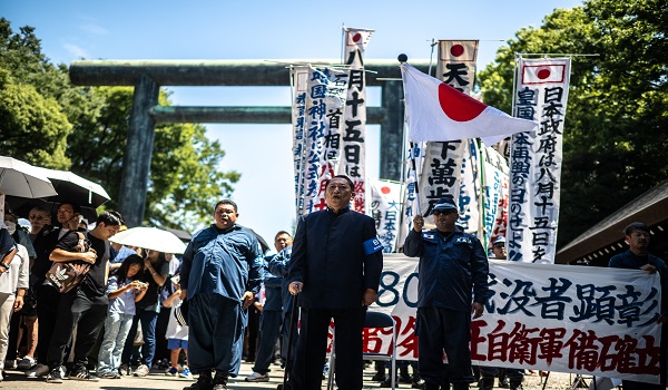 TOKYO, 16 Ogos – Ratusan rakyat Jepun berhimpun di Tokyo pada Jumaat bagi membantah lawatan pegawai kerajaan ke Kuil Yasukuni, yang menghormati 14 penjenayah perang Kelas-A Perang Dunia Kedua dan dianggap simbol militarisme Jepun.