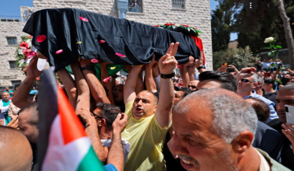 BAITULMAQDIS, 14 Mei- Ribuan rakyat Palestin memberikan penghormatan terakhir kepada jenazah wartawan Al Jazeera, Shireen Abu Akleh yang ditembak mati dalam serbuan tentera Israel di Tebing Barat.