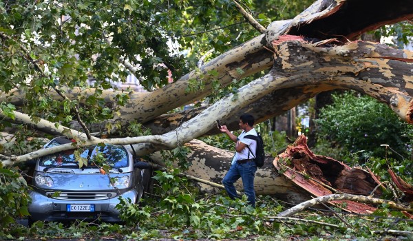 “Ribut turut menyebabkan seorang wanita separuh umur dihempap pokok tumbang di Lissone, utara Milan.