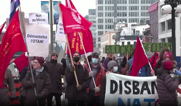 Sementara itu ada juga penunjuk perasaan yang mecadangkan agar dasar luar harus bebas daripada AS kerana rakyat Kanada mahukan keamanan.-REUTERS
